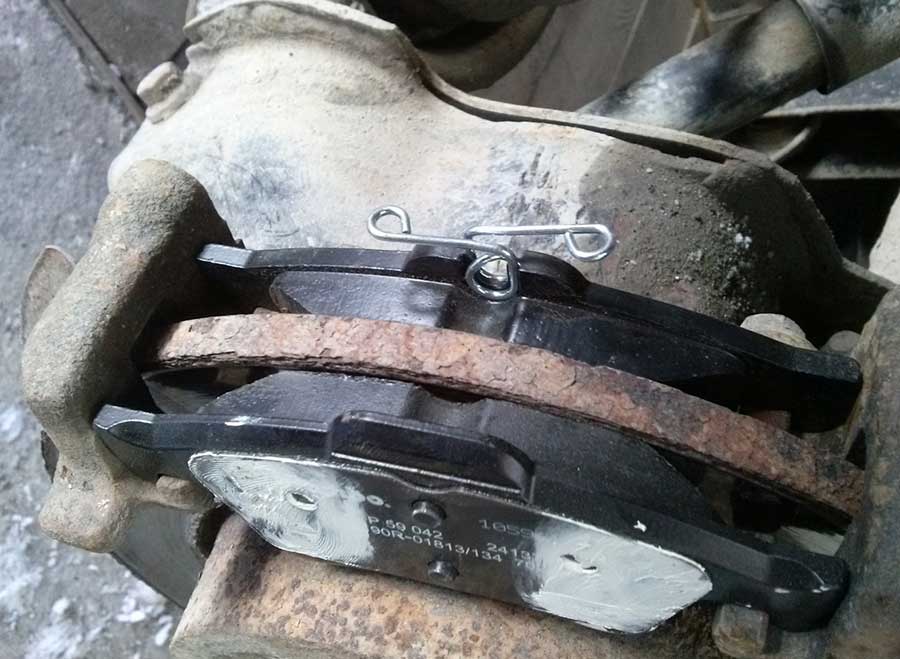 - Дожимаем поршень и устанавливаем новые колодки, делая что остается сделать нашему клиенту в оборотном порядке.